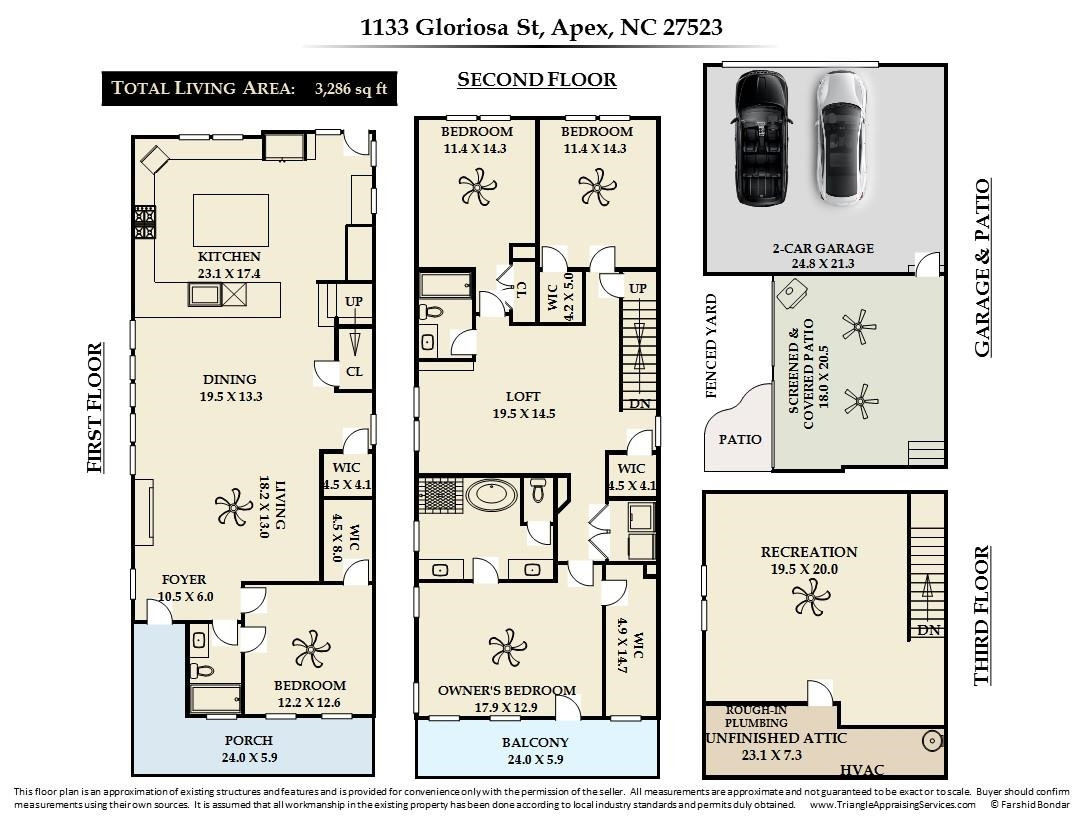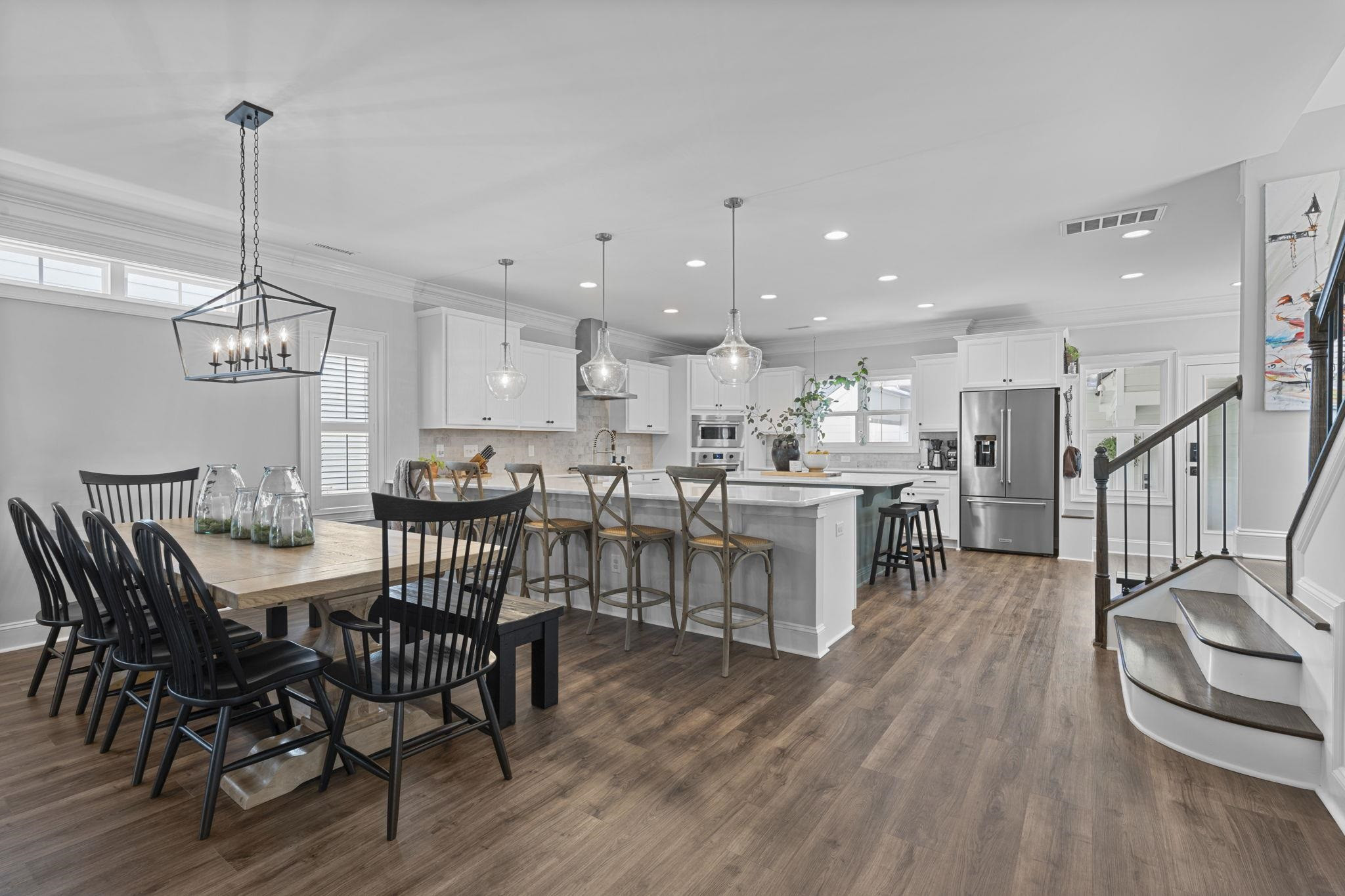 This stunning 5 bedroom property is fully updated and only 2.5 years old. Enjoy over $94k in post closing upgrades, including Plantation shutters, updated lighting, and so much more!The open floor plan seamlessly connects the Kitchen, equipped with Wolf appliances, Quartz countertops, 2 Islands, Bar Seating, and a Dry bar with a wine refrigerator. This home is perfect for entertaining. The Family Room features a reclaimed wood beam and a Brick Fireplace with a add'l reclaimed wood used for the mantle, adding character to the space.The first floor offers a Bedroom & full Bath, while the Owner's Suite which offers a sense of serenity and a private escape to your own private balcony. The 3rd-floor Bedroom/Bonus/Office is pre-plumbed for a 4th Bath. Private back yard with over $12k in landscaping, Fenced Yard with a $30k tranquil Screened in porch (retractable screens) and a Louvered Pergola with automatic wind & rain sensors. The Sweetwater community offers resort-like amenities with a clubhouse, pool, gym, and TEN pocket parks, including Playground, Dog Parks, and a Greenway Trail (connecting to Tobacco Trail).
