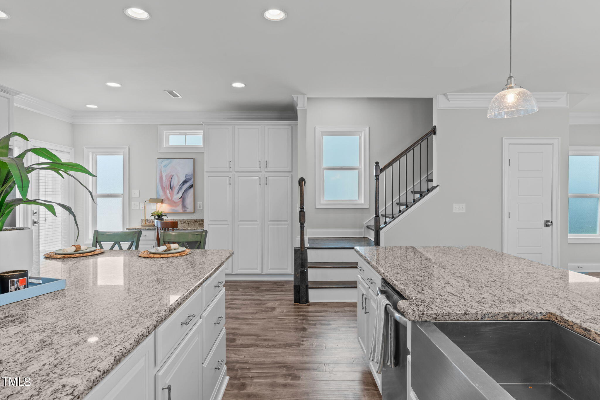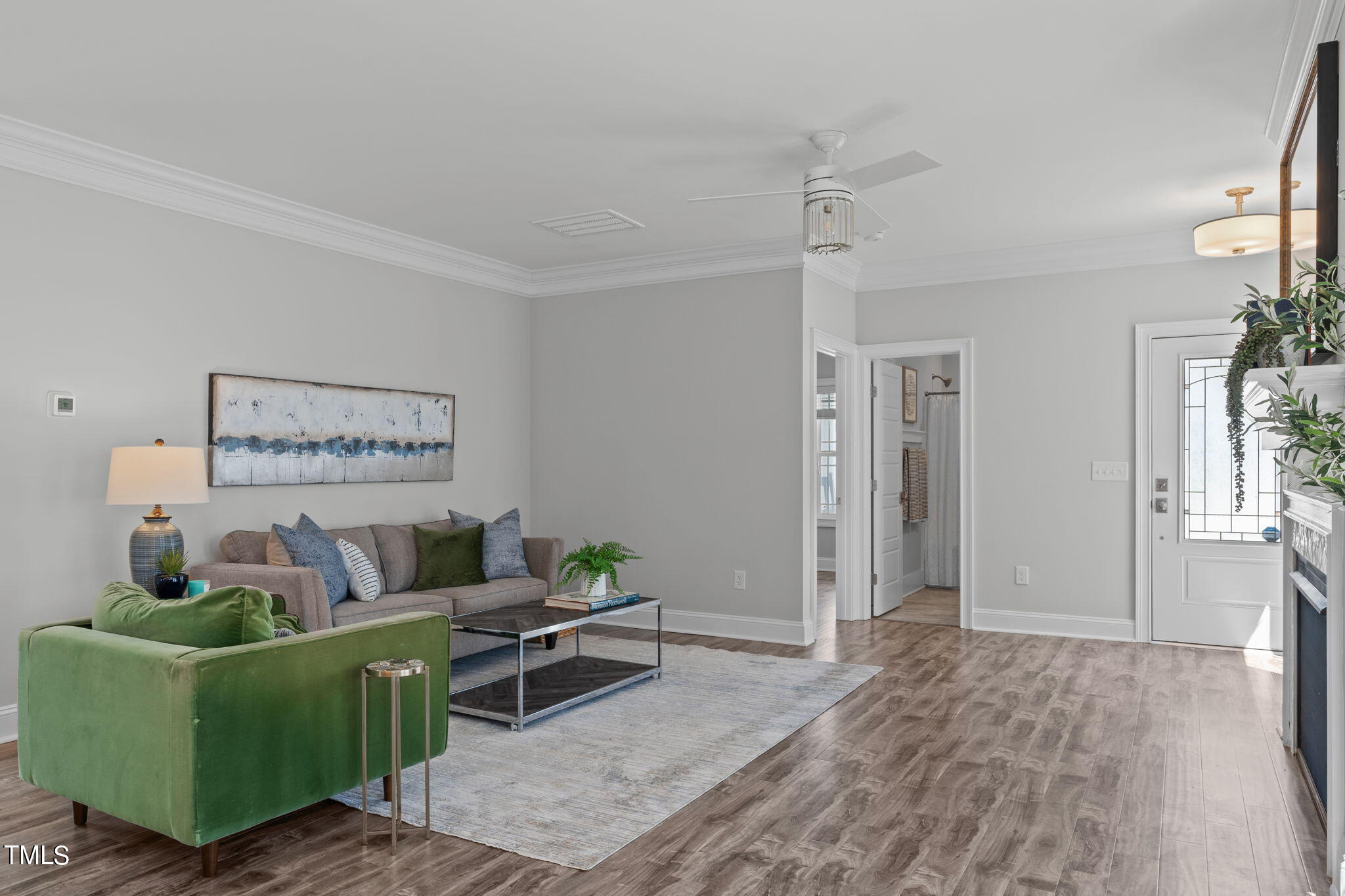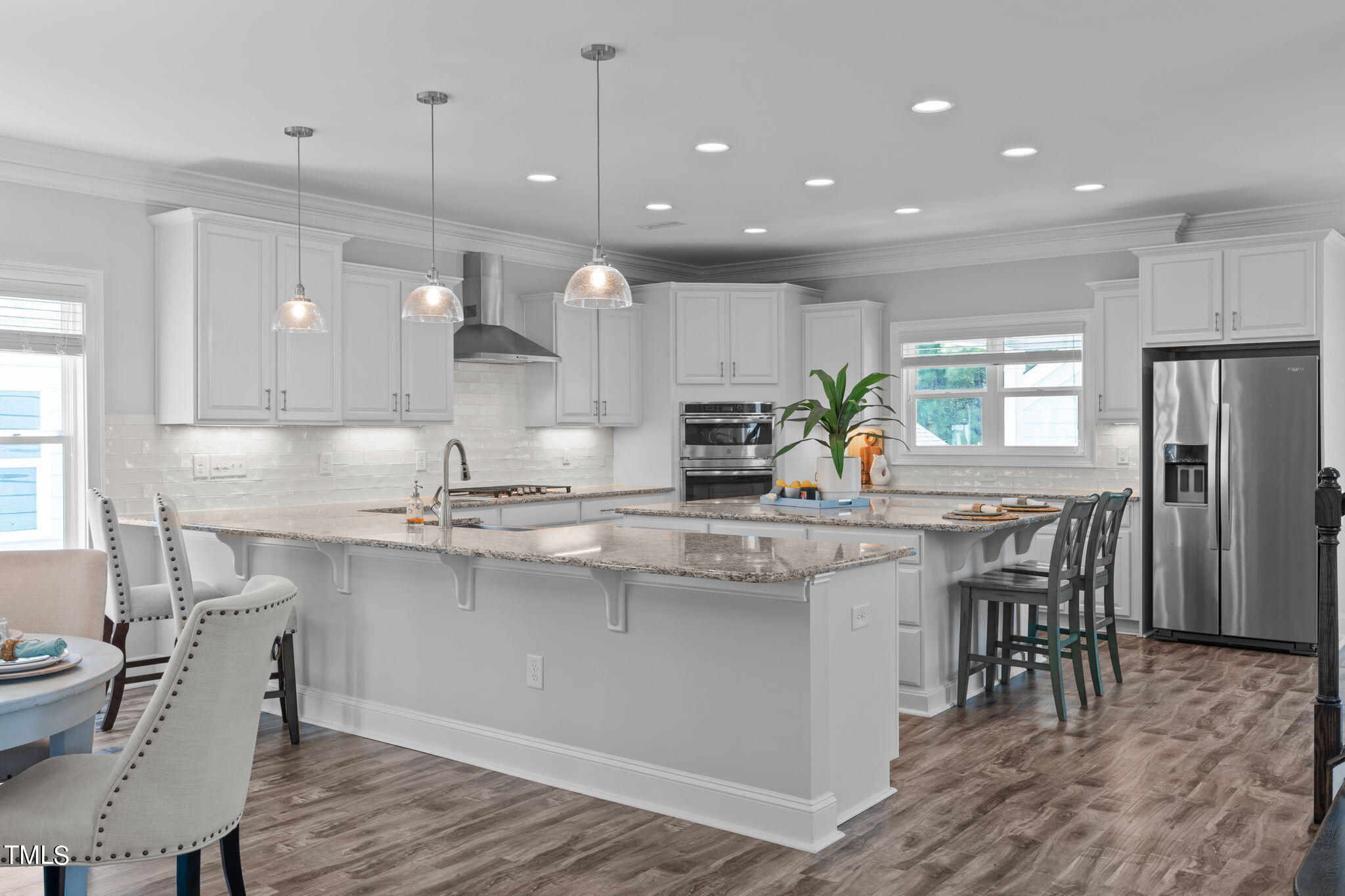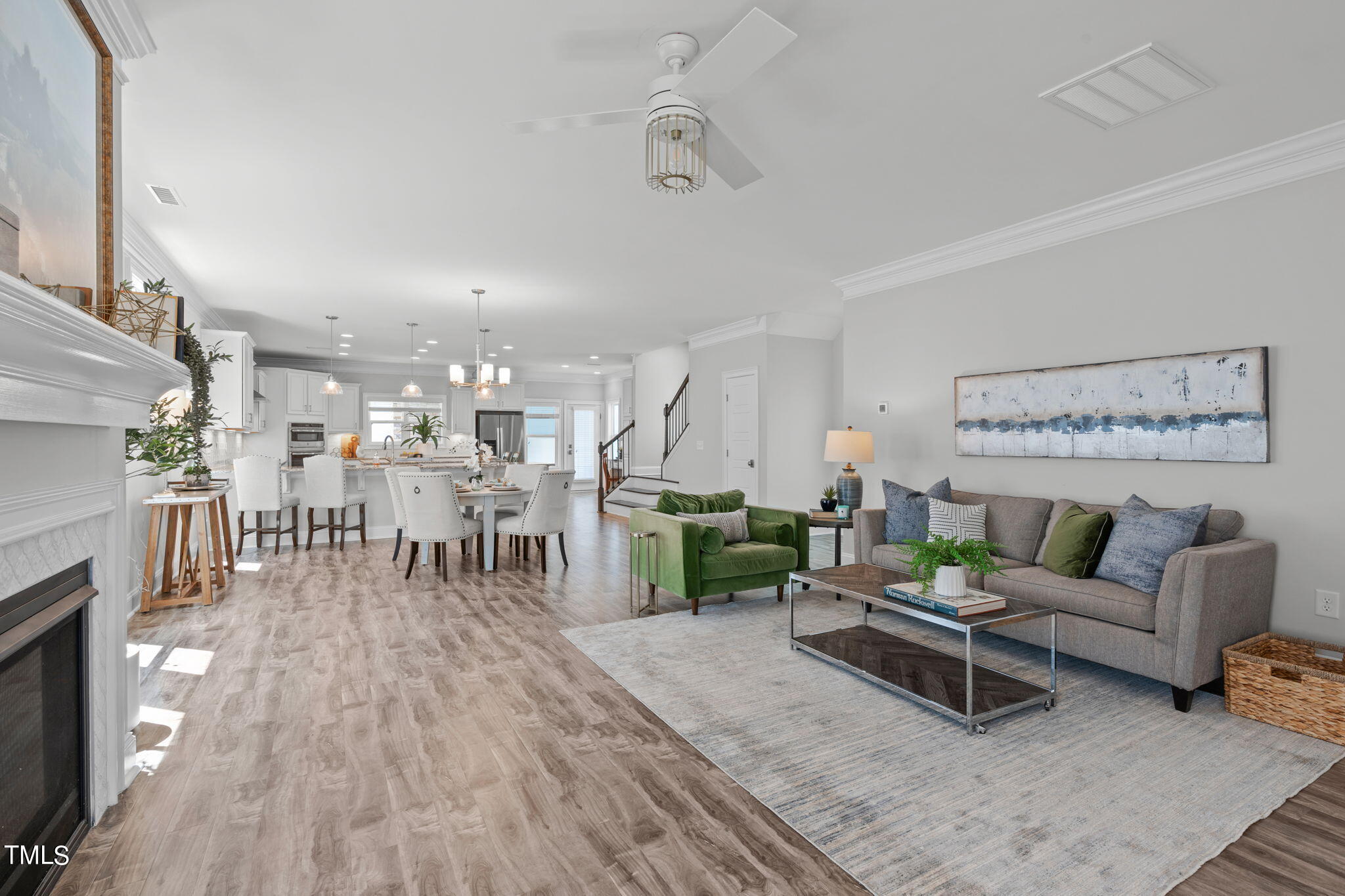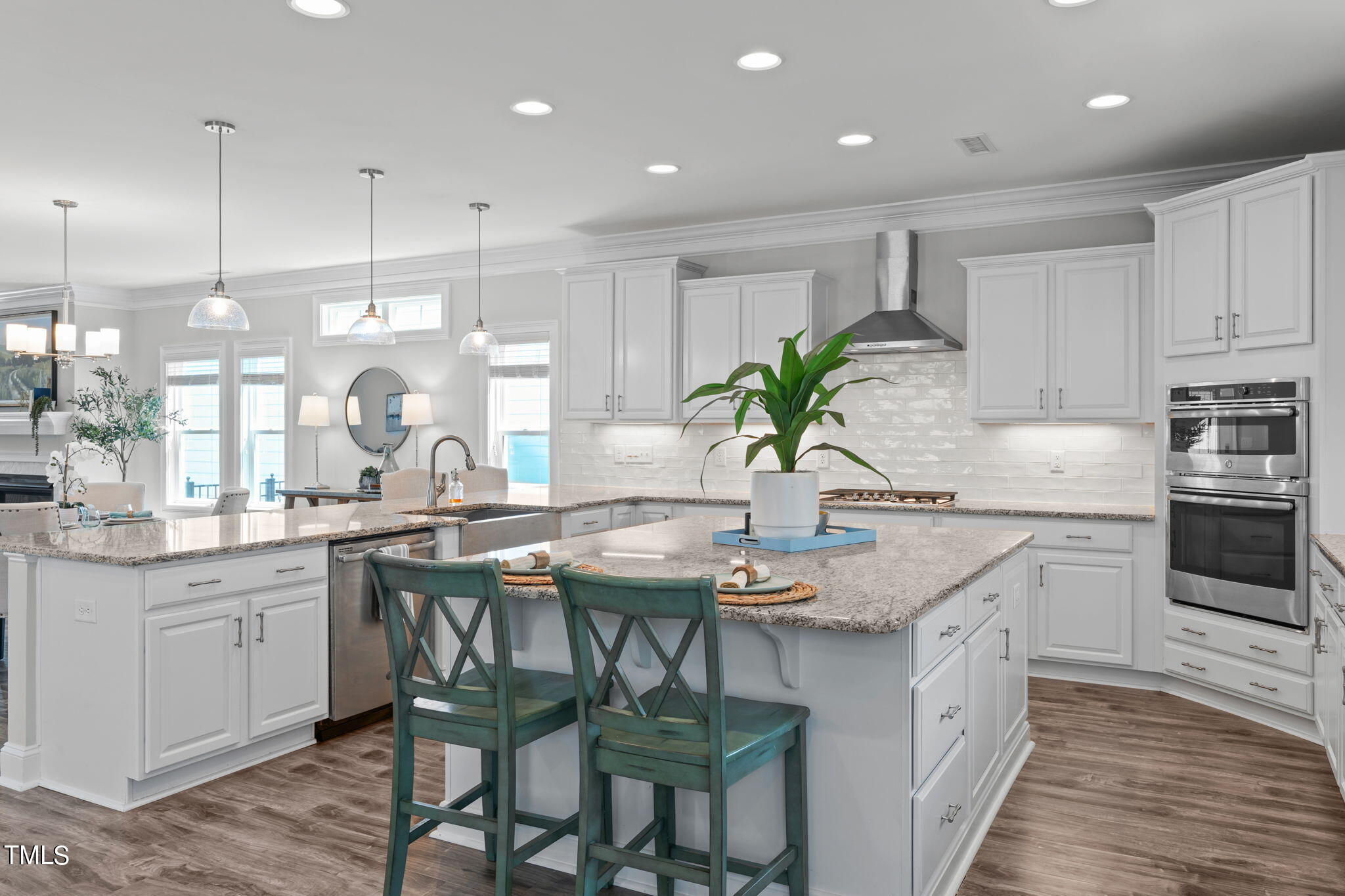 Discover the pinnacle of modern luxury in the highly sought-after Sweetwater community! This exceptional 4-bedroom, 4-bathroom home showcases premium upgrades and an expansive open floor plan tailored for today's lifestyle. The chef-inspired kitchen, featuring double islands and bar seating, is a true entertainer's dream. Relax in the bright and airy family room with its inviting fireplace, or take advantage of the convenient first-floor bedroom and bath, perfect for guests. Retreat to the oversized owner's suite, or make the versatile third-floor space your own--whether as a bedroom, bonus room, or office with its own bath. Step outside to a fully fenced backyard with a stunning stone fireplace, ideal for outdoor gatherings. Sweetwater offers resort-style amenities: enjoy the pool, fitness center, parks, and miles of scenic walking trails. All of this, just minutes from downtown, RTP, and the new Sweetwater Town Center and Harris Teeter!