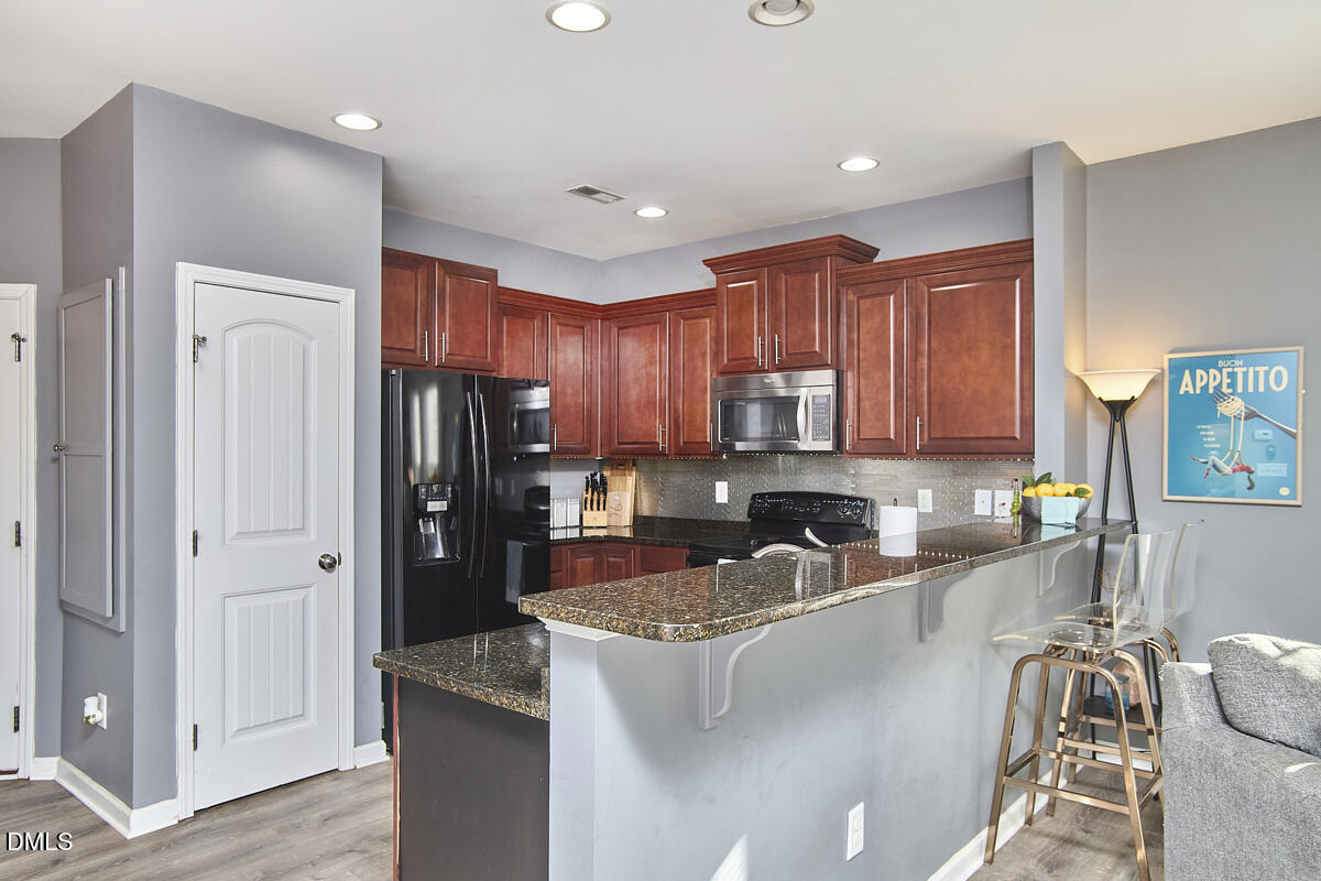The kitchen features granite countertops, crown topped cabinetry, recessed lighting, a pantry, and a sunny dining area that is ideal for everyday living and entertaining. The spacious family room includes a cozy gas fireplace and built in speakers, making it perfect for gatherings or relaxing at home.