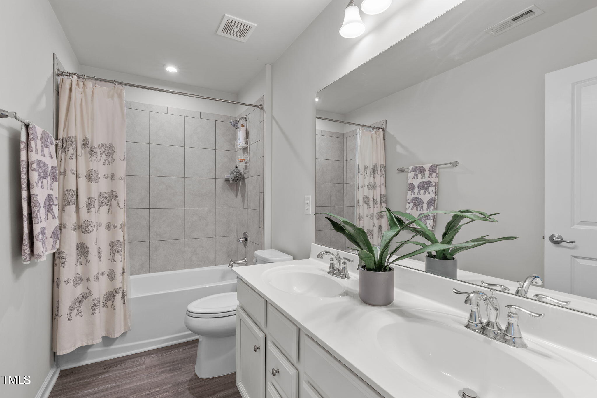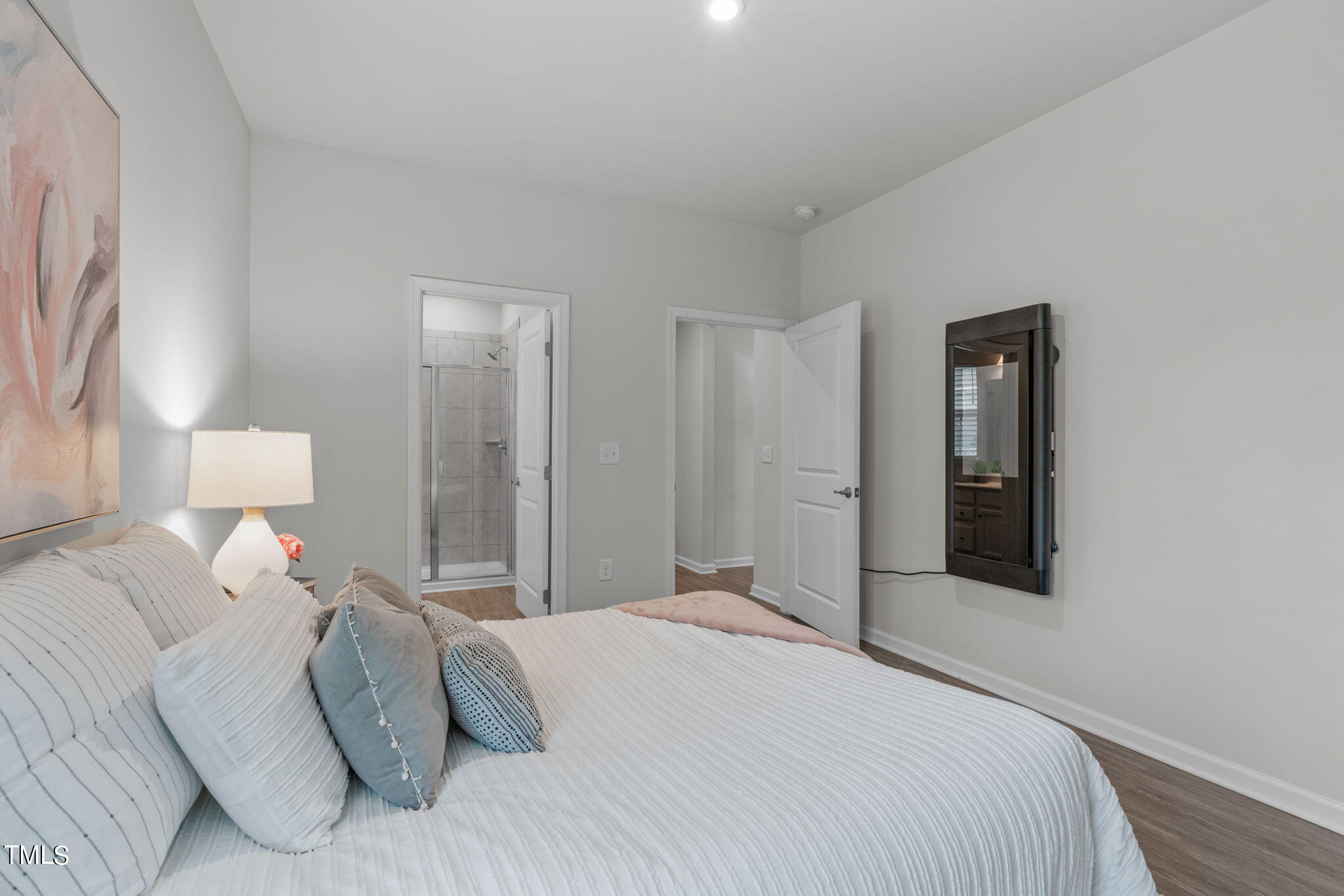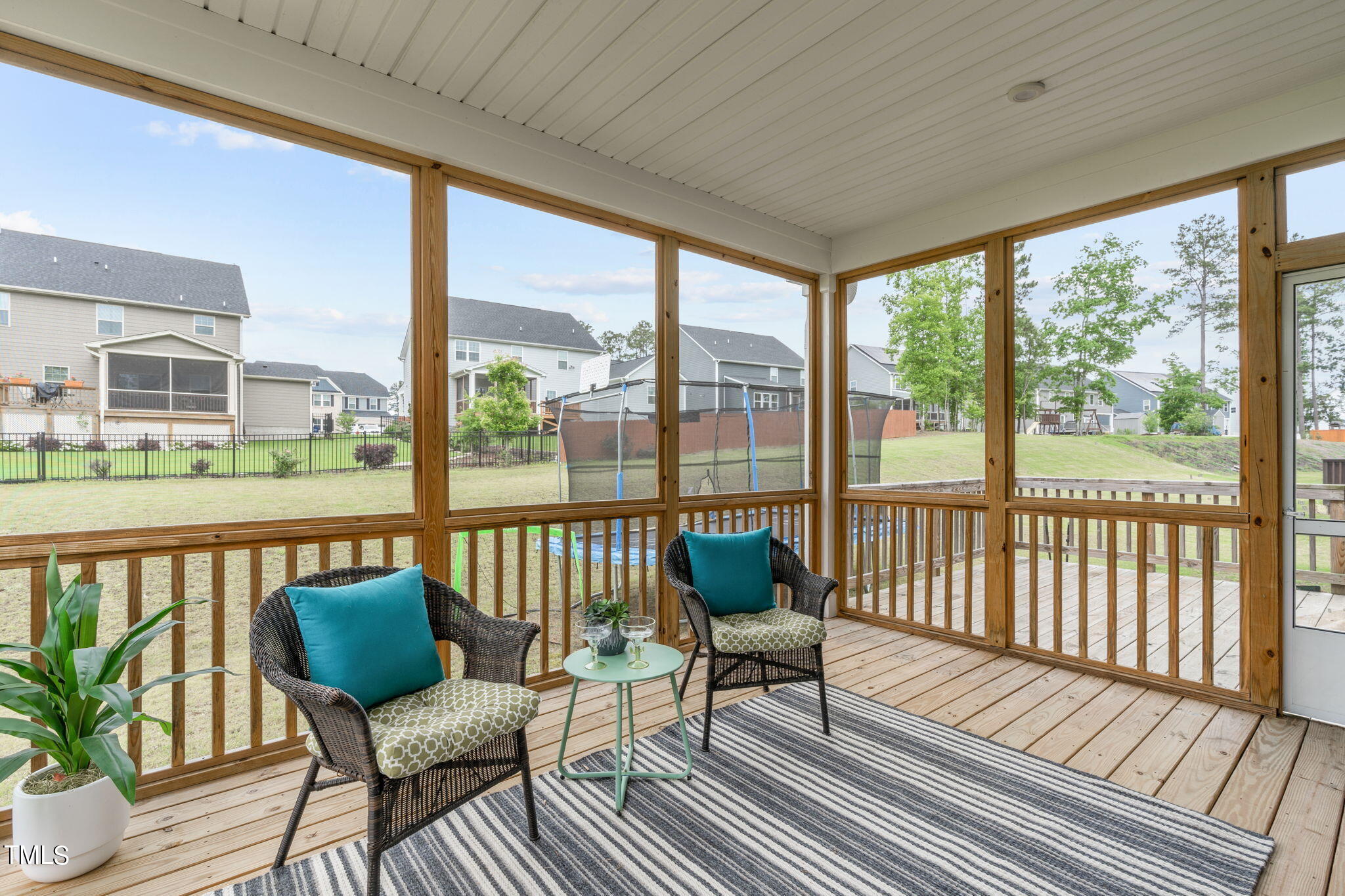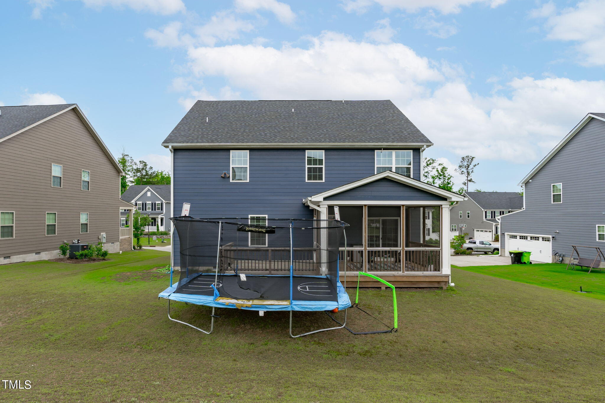Gorgeous home nestled in the highly sought-after Jordan Pointe community, boasting Apex Schools! This practically new home, constructed in 2020, is packed with all the bells & whistles. Perfect for hosting with an entertainer's dream layout, featuring a sprawling living area seamlessly connected to a stunning white kitchen! Flooded with natural light, the sprawling living area is seamlessly connected to a stunning white kitchen with a spacious island adorned with quartz countertops, a large pantry, and a large breakfast room area. Plus, a convenient 1st FLOOR GUEST/Office & FULL BATH! Hardwoods Throughout Main Living! The Primary Suite boasts a tray ceiling, and the Bath features Separate Vanities, a Large Walk-in Tile Surround Shower, and Separate His/Her Walk-in Closets! Relax on the front porch for neighborly chats or unwind on the screened back porch or deck after a hectic day. Jordan Pointe offers Resort Style Amenities an array of conveniences, including extensive sidewalks, a community pool, a dog park, and a playground.