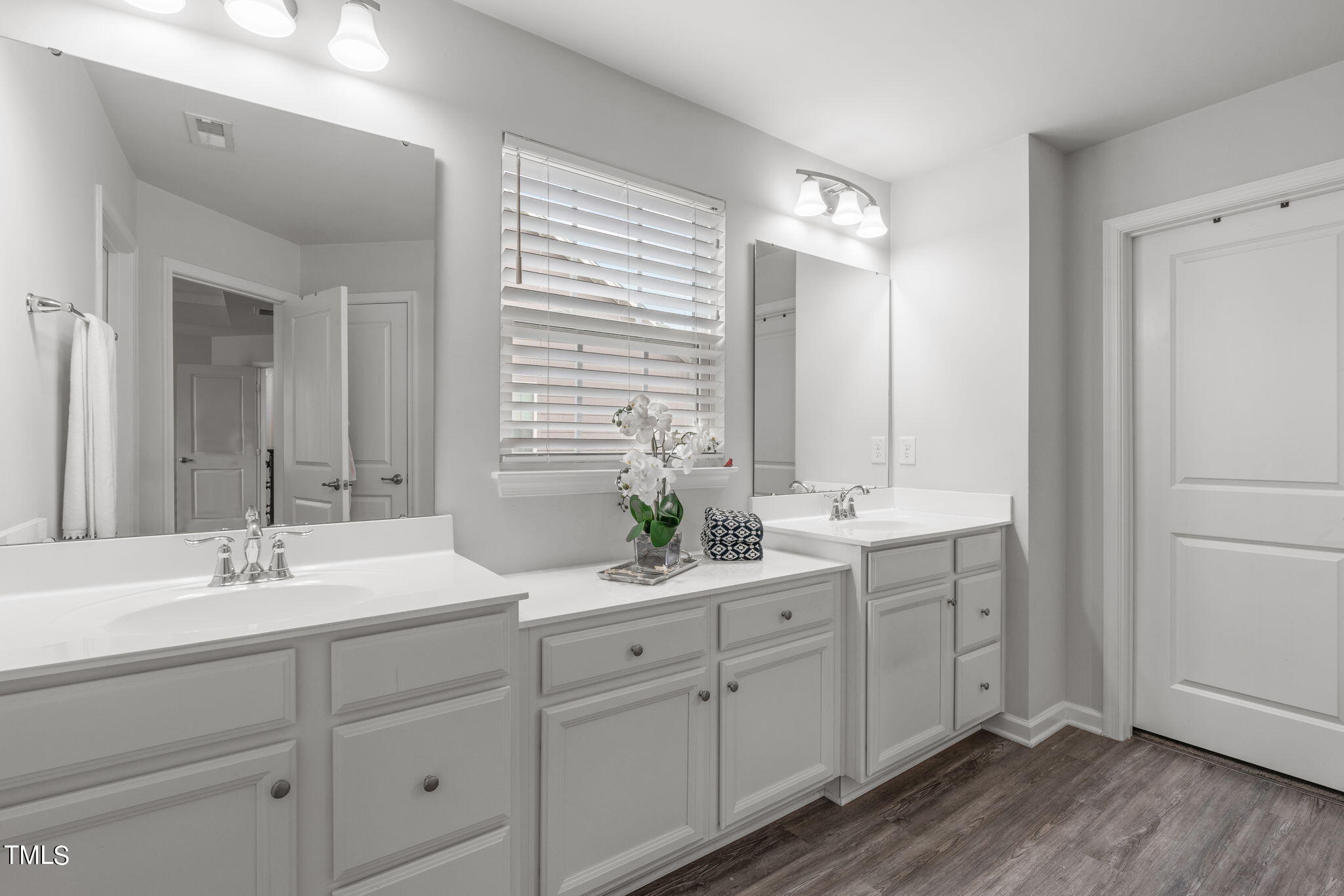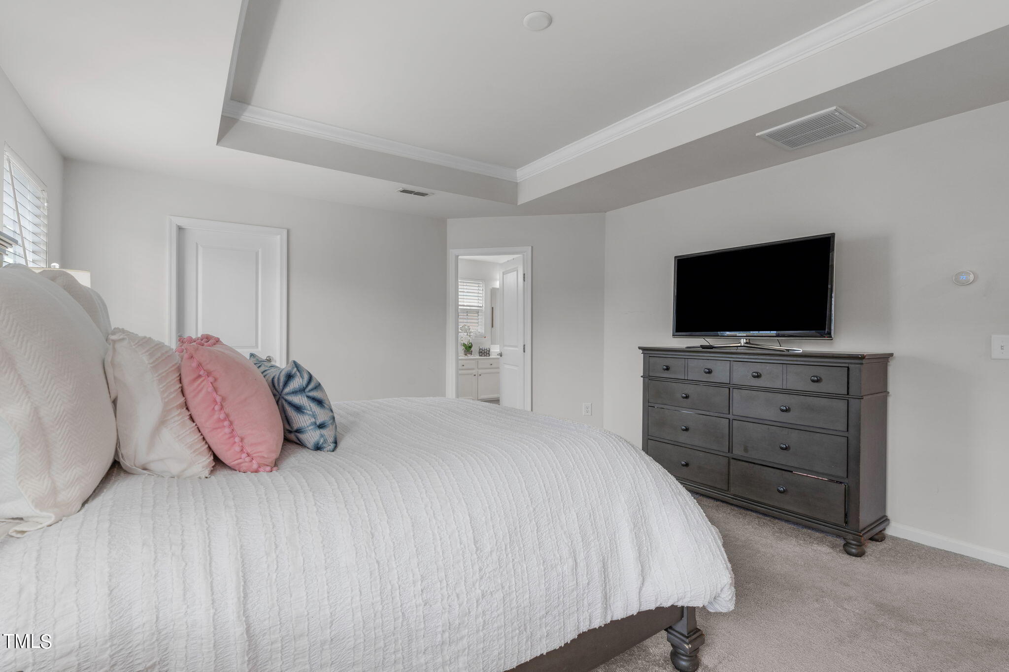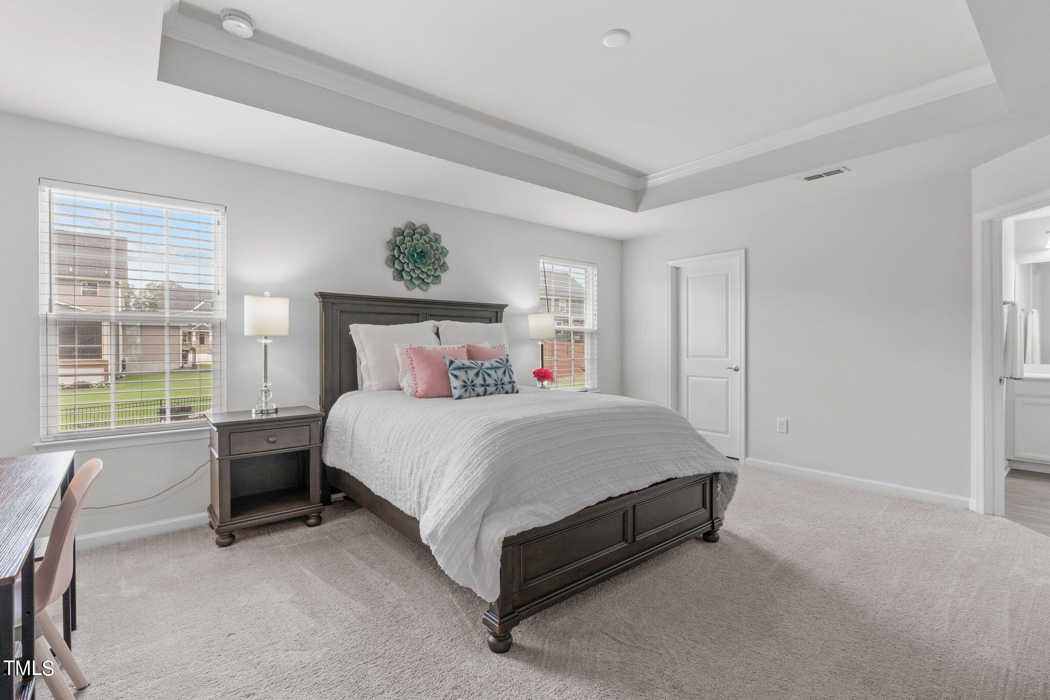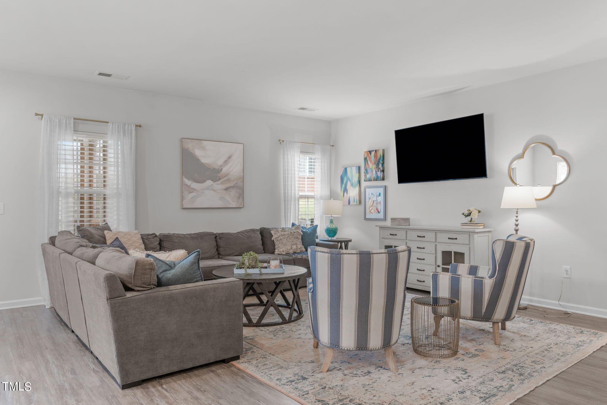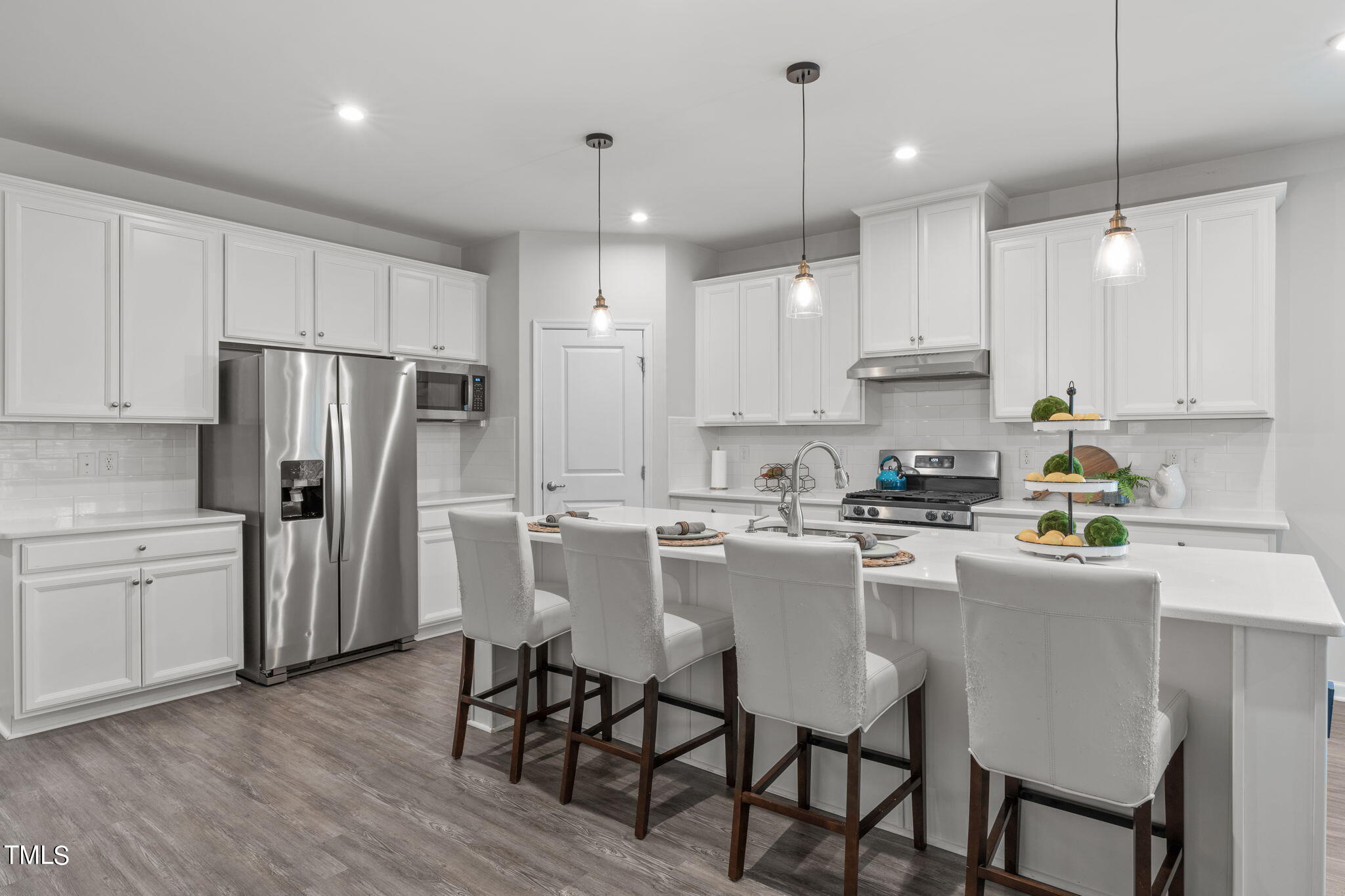 Gorgeous home nestled in the highly sought-after Jordan Pointe community, boasting Apex Schools! This practically new home, constructed in 2020, is packed with all the bells & whistles. Perfect for hosting with an entertainer's dream layout, featuring a sprawling living area seamlessly connected to a stunning white kitchen! Flooded with natural light, the sprawling living area is seamlessly connected to a stunning white kitchen with a spacious island adorned with quartz countertops, a large pantry, and a large breakfast room area. Plus, a convenient 1st FLOOR GUEST/Office & FULL BATH! Hardwoods Throughout Main Living! The Primary Suite boasts a tray ceiling, and the Bath features Separate Vanities, a Large Walk-in Tile Surround Shower, and Separate His/Her Walk-in Closets! Relax on the front porch for neighborly chats or unwind on the screened back porch or deck after a hectic day. Jordan Pointe offers Resort Style Amenities an array of conveniences, including extensive sidewalks, a community pool, a dog park, and a playground.